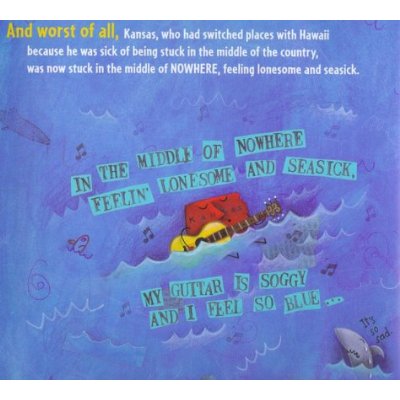 You could read a B for an A, or paint the red for color 1 in the yellow for color 2 slot – but it all depends on what one defines as their own personal pleasure or satisfaction in their use. I think to some extent early literacy is successful because of making parts of the code personal, codes that are prepackaged for consumption: letters, numbers, or even memorizing the letter pairs of abbreviated names of the US states. For the 6th birthday of one of the children I regularly babysit, I gave as a gift a copy of The Scrambled States of America by Laurie Keller, a book that turns the states into characters with personalities. Maybe I bought it because it reminds me of the way when I was younger I would give the letters of the alphabet different personalities. (I tried to capture this in a cringe-worthy ode in a 9th grade poetry class of mine, per “An Alphabetical Tragedy” below.)