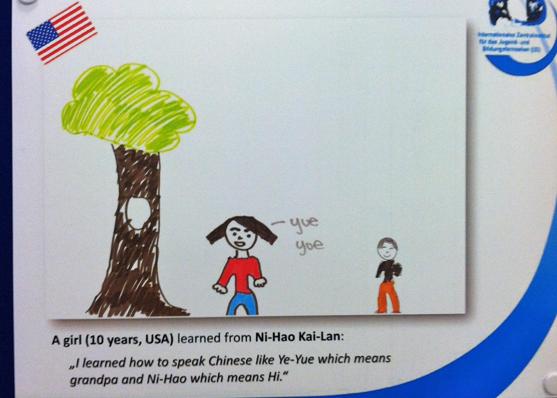 A girl (10 years, USA) learned from Ni Hao, Kai-lan: “I learned how to speak Chinese like Ye-Yue which means grandpa and Ni-Hao which means Hi.” (I got a special kick out of this response since I worked on Ni Hao, Kai-lan.)